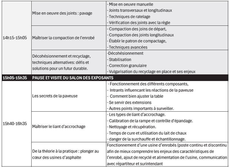 Tous ceux et celles qui sont impliqués dans la fabrication et la mise en oeuvre de l'enrobé. Du manoeuvre à l'opérateur, au contremaître, au surintendant, au technicien de chantier, au gérant de projet ainsi qu'au responsable des ressources humaines. À tous ceux qui oeuvrent dans l'industrie du pavage et qui désirent parfaire leurs connaissances et leurs méthodes de travail afin de livrer des travaux impeccables.