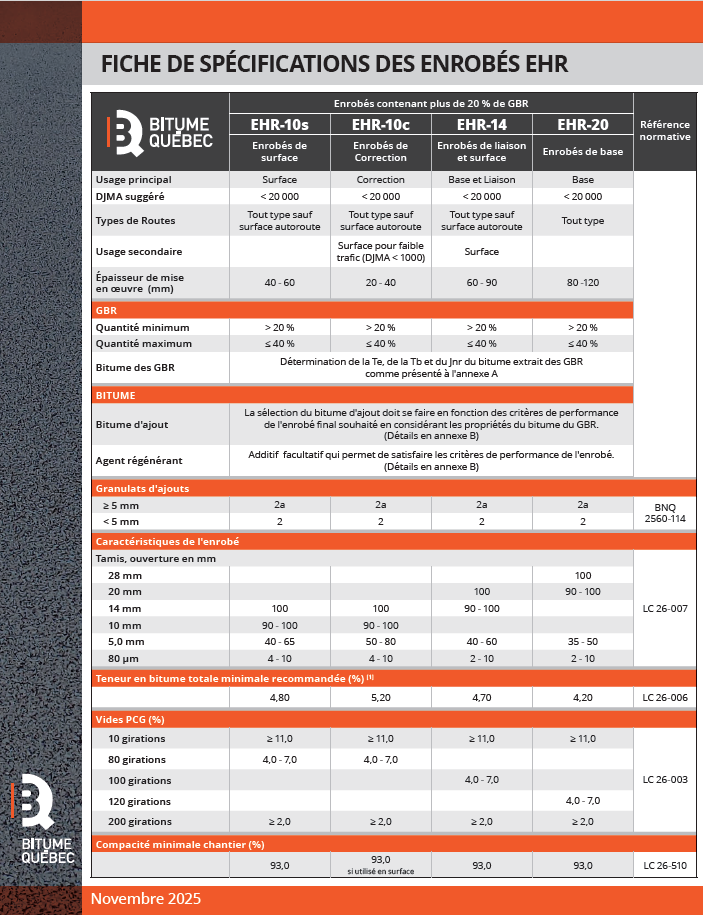 FICHE SPÉCIFICATIONS - Enrobés EHR