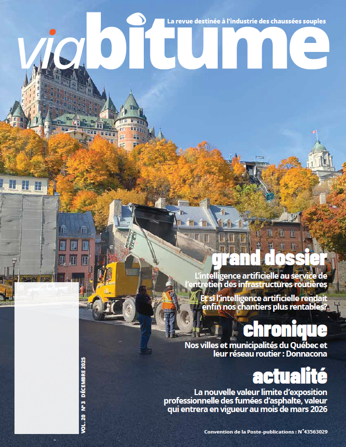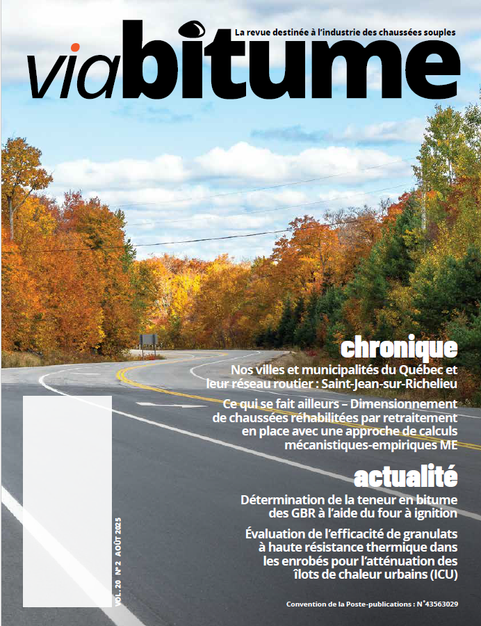 VIA BITUME est une revue professionnelle qui s’adresse à tous les intervenants du milieu de la construction routière. Publiée trois fois par année, son tirage est de plus de 3 000 exemplaires distribués GRATUITEMENT par la poste.